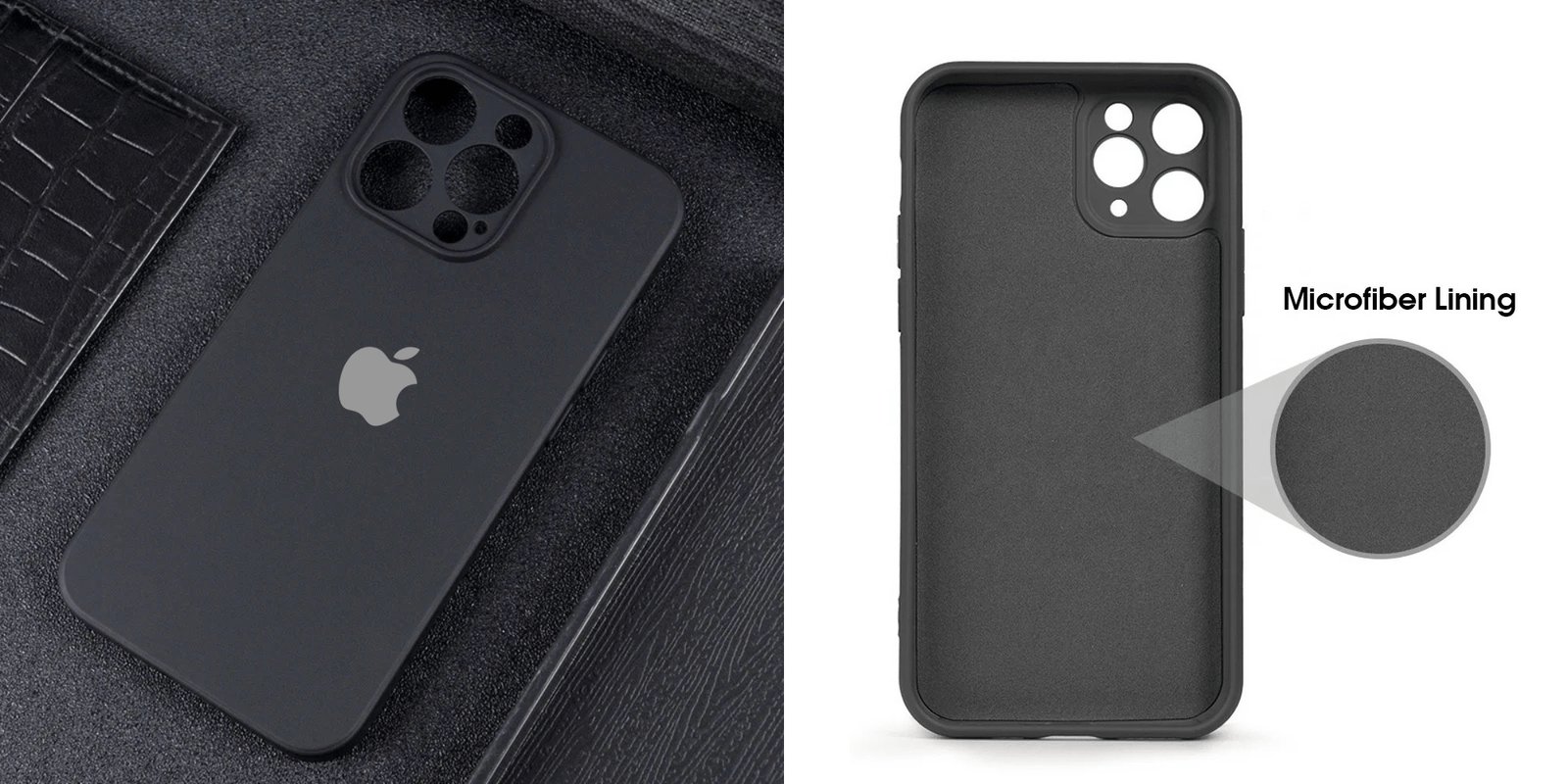 Ultrathin Flat Square iPhone Softcase Black Doff Microfiber X XS XR 11 12 Mini 13 14+ 15 Pro Max
